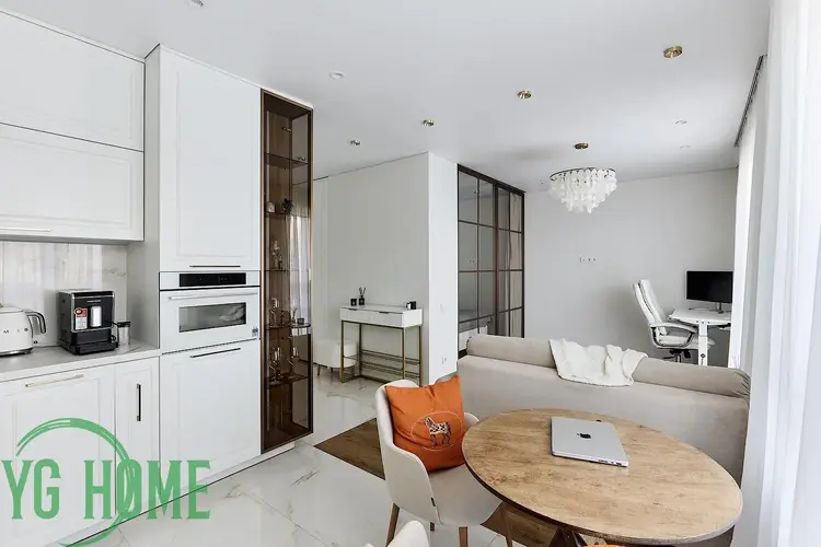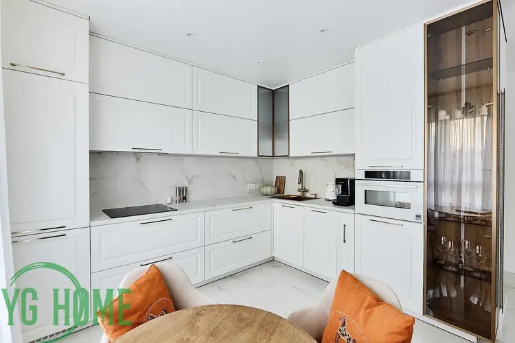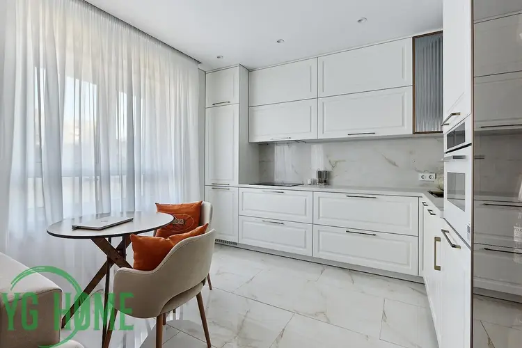 В квартире выполнен качественный и стильный ремонт, все продумано до мелочей. Надежная бытовая техника BOSCH, квартира полностью укомплектована - духовой шкаф, варочная поверхность, посудомоечная машинка, встроенный холодильник, вытяжка, стиральная машинка.