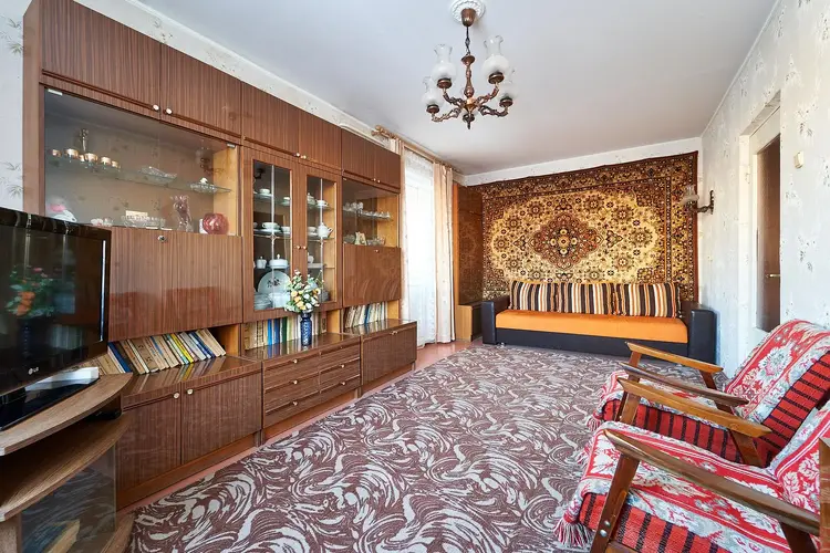 Квартира расположена на 3 этаже 9ти этажного жилого дома 1983 года постройки. Площадь квартиры по СНБ 35м2, общая площадь 32,9м2, огромная жилая комната 17,2м2. Уютная кухня правильной формы 7,2м2.