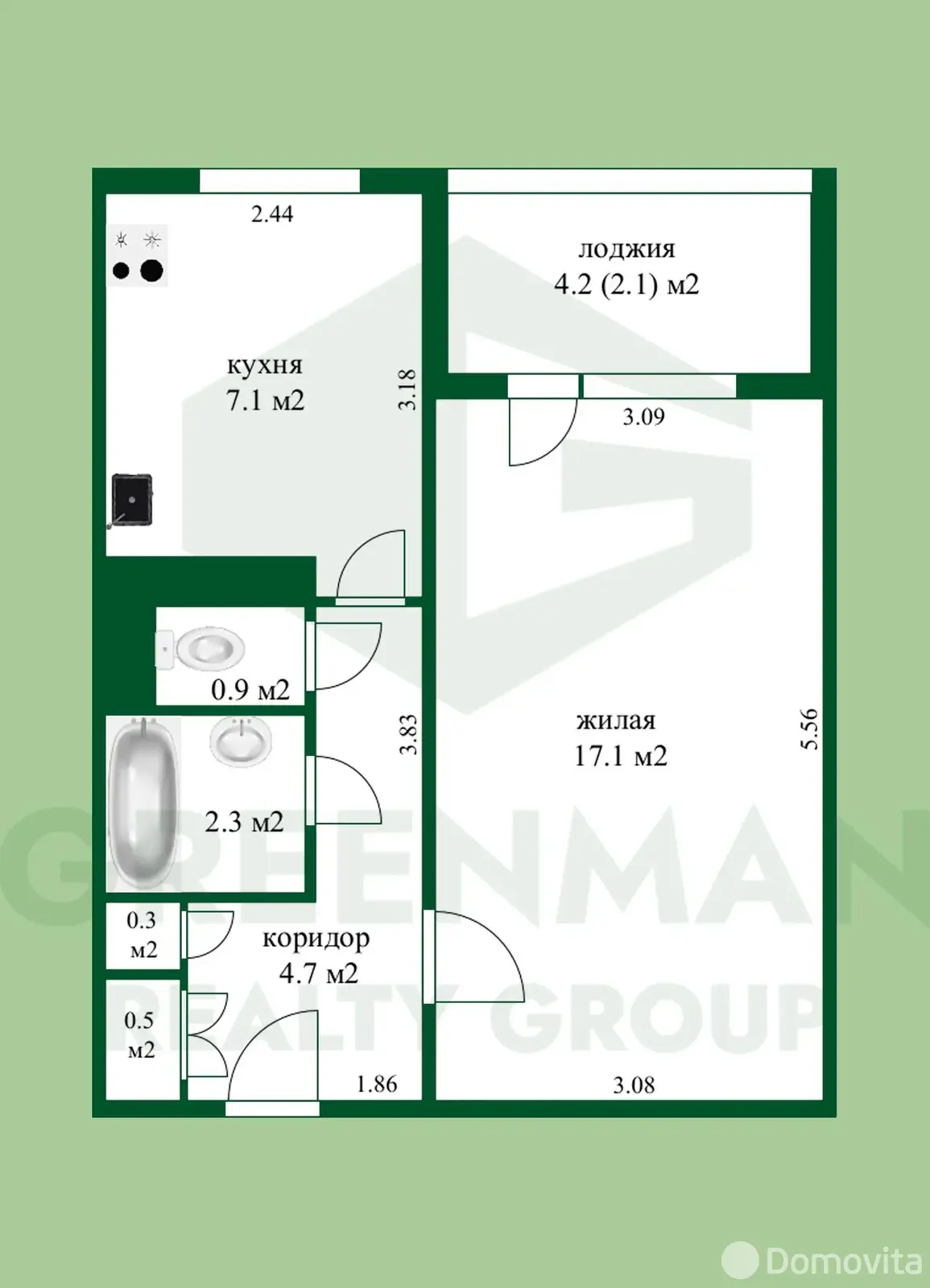 1-комнатная квартира на комфортном 4 этаже 9-этажного дома (1979 г.п.). Площадь 32,9 м.кв., жилая 17,1 м.кв., кухня 7,1 м.кв., потолки 2,54 м — квартира воспринимается просторнее, чем «обычная однушка» за счёт света, отделки и правильной организации зон.