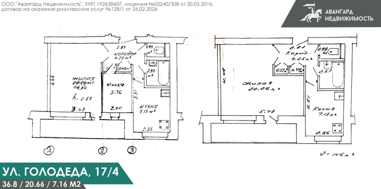 - Общая площадь: 36.8 м2 (без учёта лоджии)