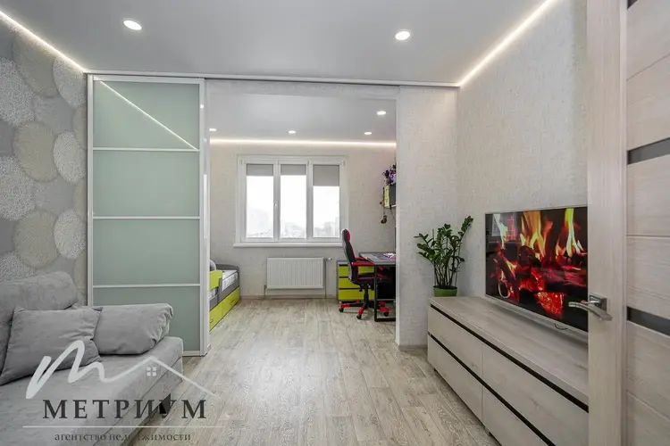 Квартира в отличном состоянии, выполнен качественный ремонт с использованием современных материалов. Стильная кухонная зона, со встроенным качественным кухонным гарнитуром и техникой. Светлая ванная комната с практичной плиткой и хорошей сантехникой. В коридоре установлено два удобных шкафа для вещей. Жилая комната разделена на две зоны. Площадь квартиры 45.2 кв. м., высота потолков 2.65 м.
