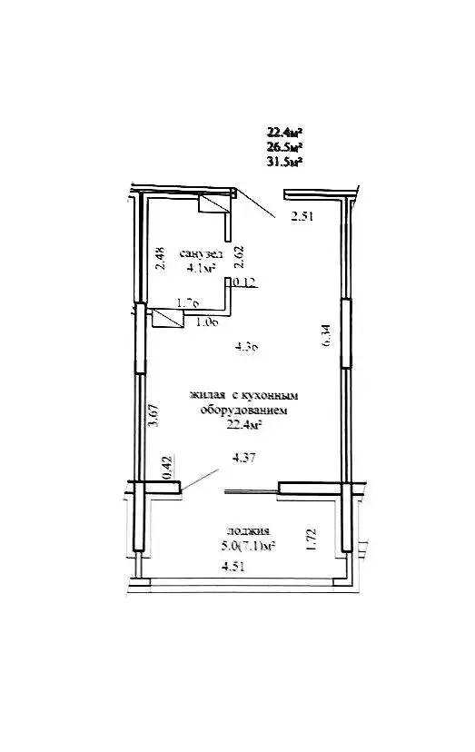 Удачная планировка позволяет поделить студию на кухонную и спальную зоны, а просторную лоджию, можно обустроить под рабочий кабинет.