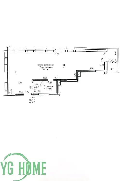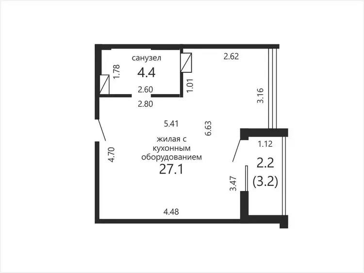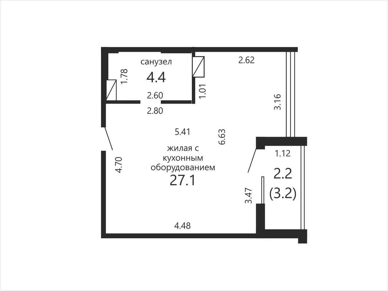 Общая площадь — 31,5 м²