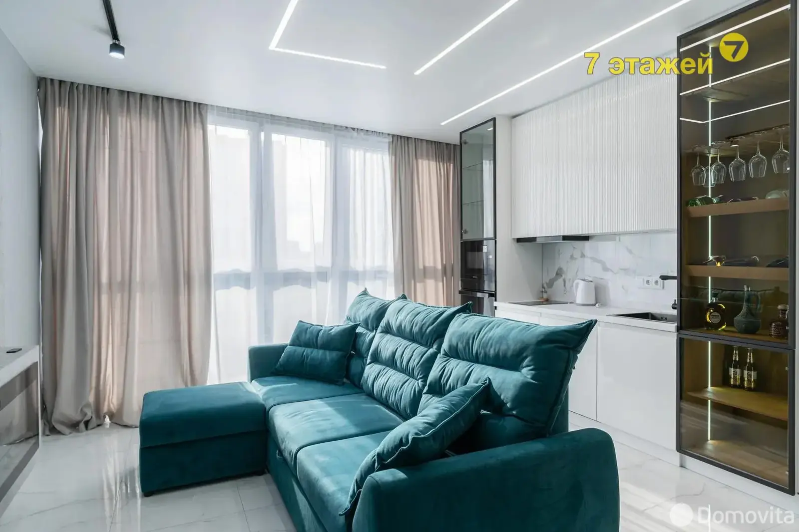 Квартира полностью готова к проживанию, оборудована всей необходимой бытовой техникой и мебелью с современным интерьером. Панорамные окна в пол открывают потрясающий вид на город.
