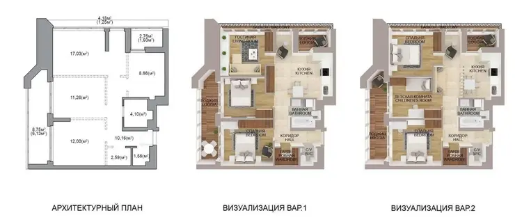 Удачная планировка позволяет грамотно зонировать пространство и реализовать полноценную кухонную, спальную и гостевую зоны. За счёт формы помещения квартира ощущается просторнее своей площади.