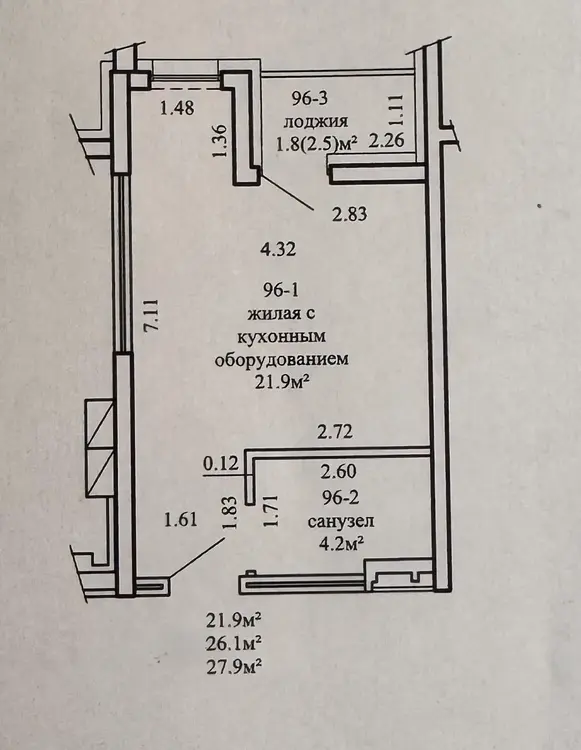 Площадь по СНБ — 31,6 м2. Квартира расположена на 4 этаже 25-этажного дома.