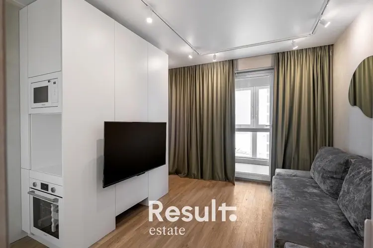 Светлая квартира на 9 этаже дома, с потрясающим видом на башни международного финансового центра.