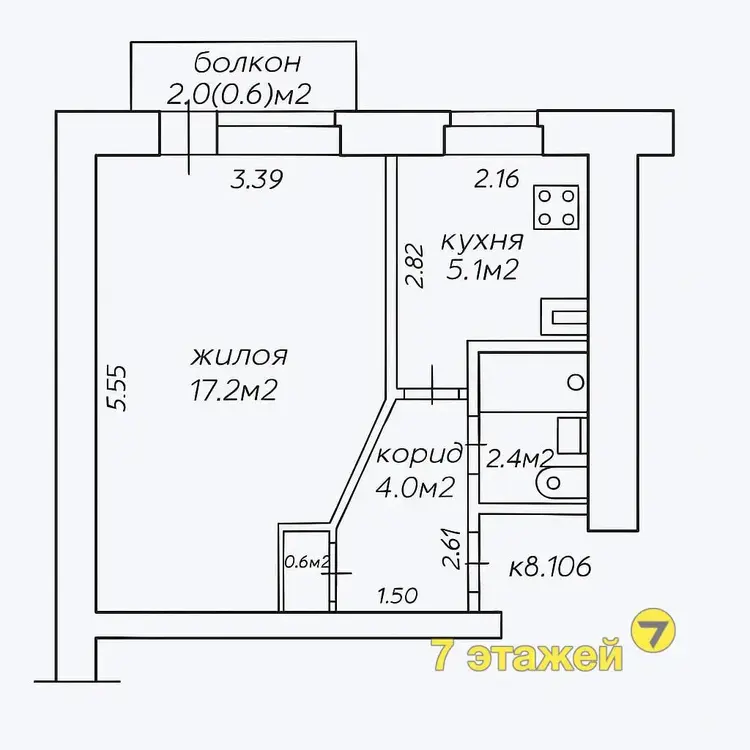 Материал стен: кирпичный; Год постройки: 1970; Этаж: 4/5, балкон; Площадь СНБ: 29,9; Общая площадь: 29.3; Жилая площадь: 17.2; Площадь кухни: 5.1; Высота потолка: 2.46.