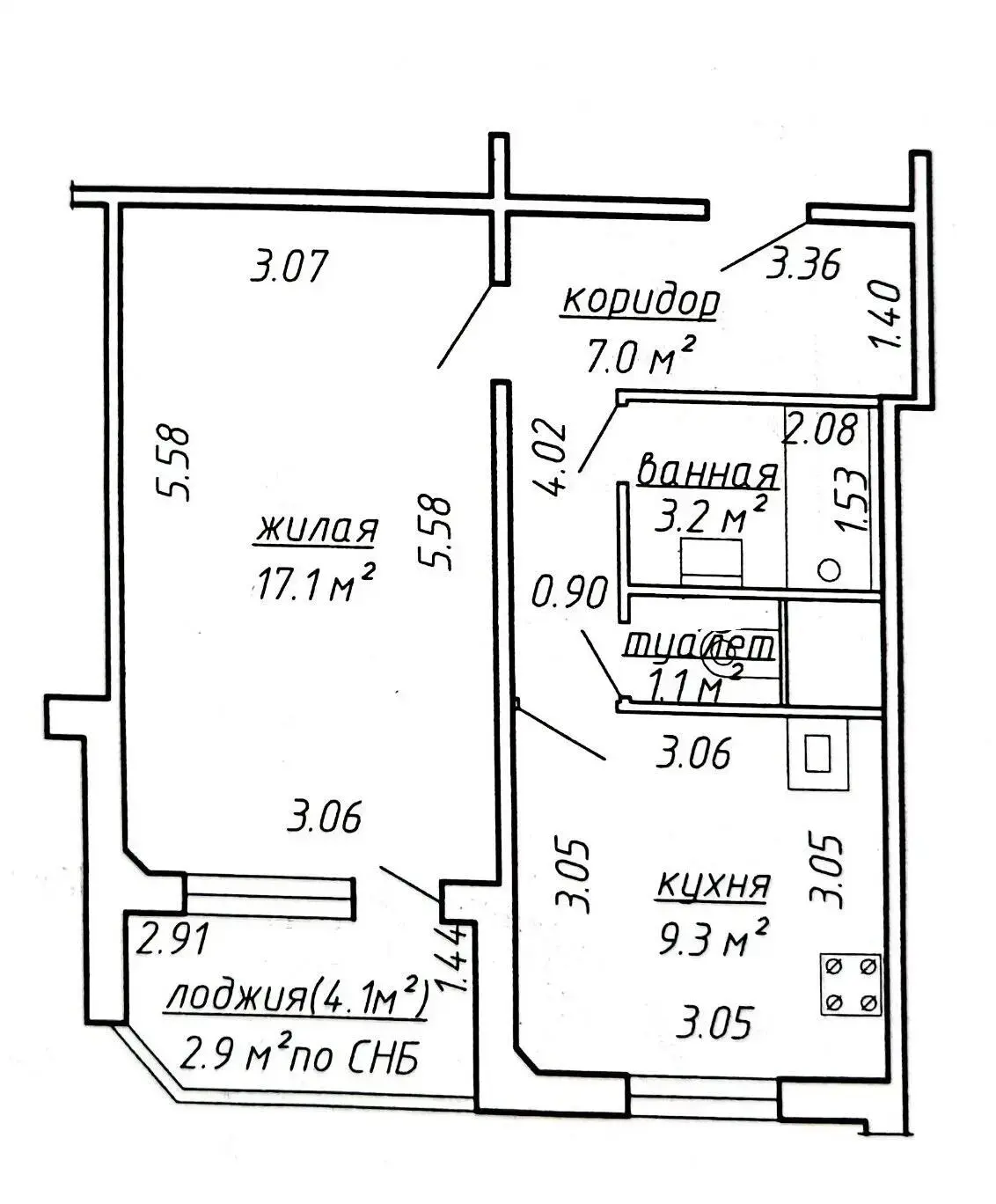 Общая площадь квартиры 40,6 кв.м.