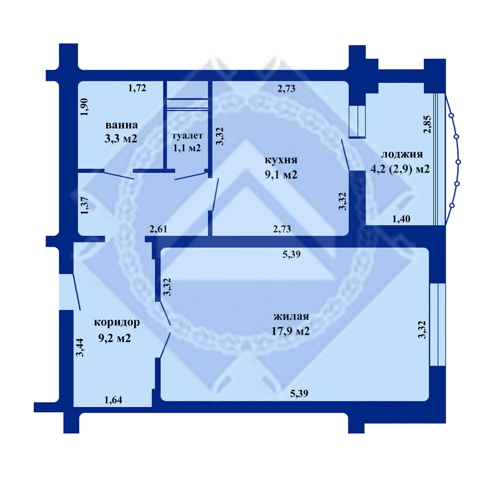 - Кухня большая 9,1 м2, Жилая - 17,9 м2;