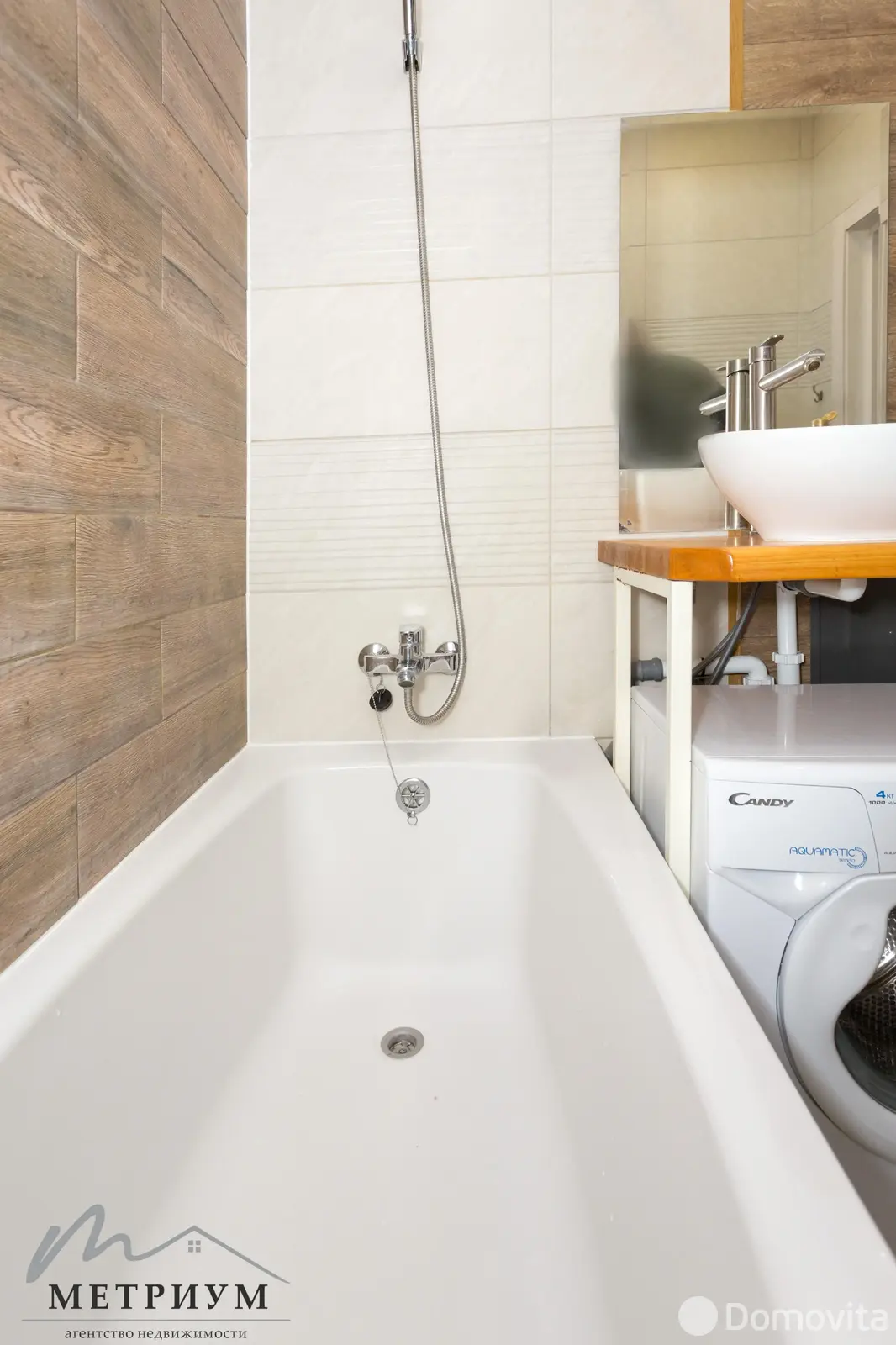 Санузел облицован современной плиткой, достаточно просторный и функциональный за счет грамотного планирования всех зон, установлены счетчики учета воды, предусмотрены лючки для доступа к трубам.