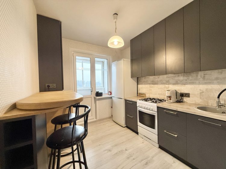 · Застеклённая лоджия ‒ с выходом из кухни, которую можно превратить в уютное место для утреннего кофе, зимний сад или рабочее место..