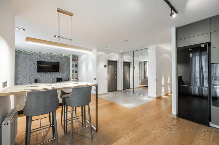 Выполнен современный ,качественный ремонт с применением лучших материалов. На полу плитка с подогревом и паркетная доска, вся мебель и техника остается новым хозяевам. Окна выходят на восточную и западную сторону, в квартире много солнечного света.