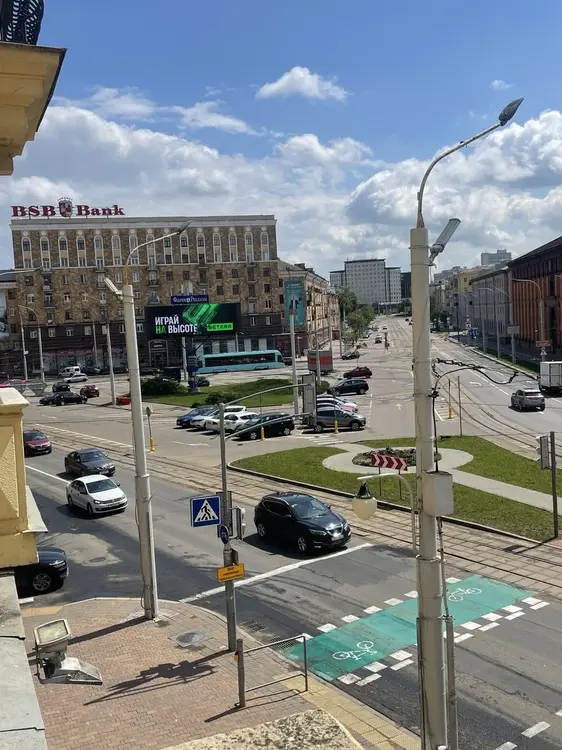 Максимально обустроенный район города Минска. Возле дома находиться автобусная и трамвайная остановка. До станции метро «Площадь Победы» 2 остановки. Большое количество магазинов, кафе, баров, парк отдыха и развлечения имени М. Горького, Молодежный театр, выставочный центр, спортивный комплекс «Лазурный».