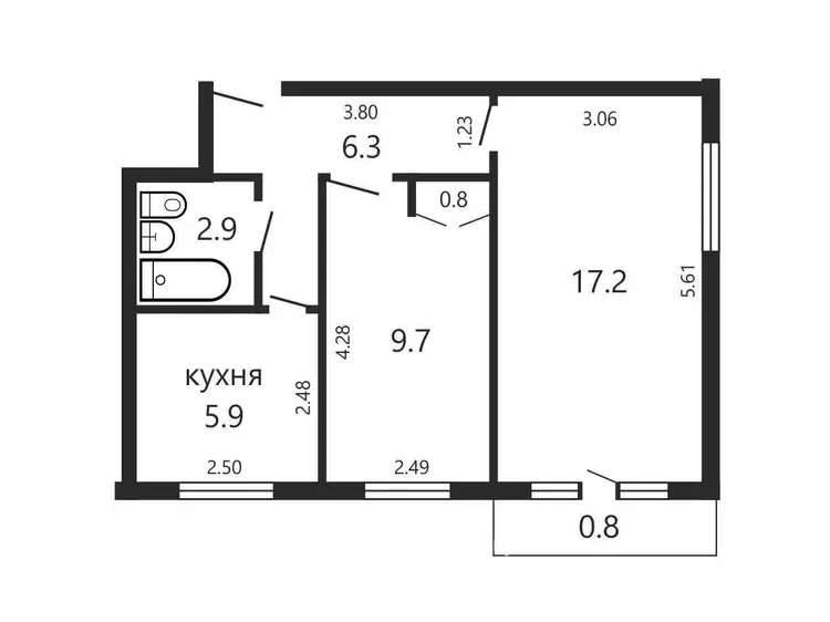 Общая площадь 33,99 м2. Просторная, светлая комната с двумя окнами площадью 20,70 м2. Стандартная кухня площадью 7,27 м2. Совмещенный сан/узел. Высота потолков 3,10 м.