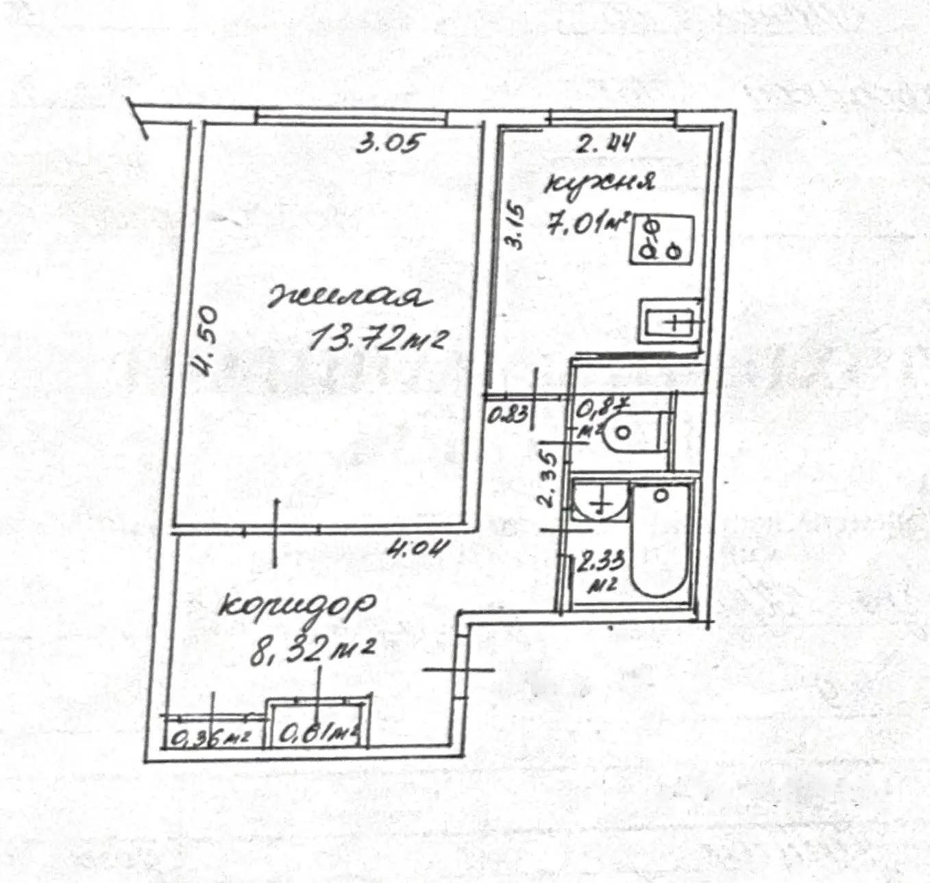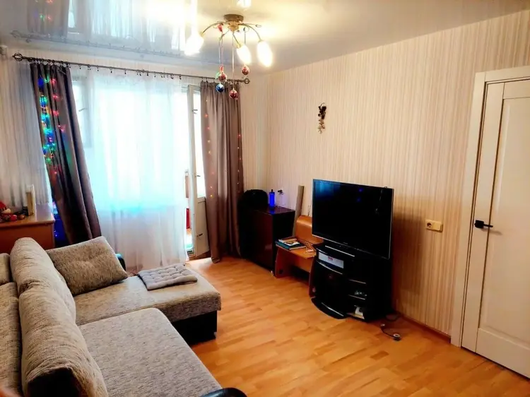 Квартира расположена на 8 этаже, тамбур на 2 квартиры. Общая площадь 33, 2 м кв., комната 13.72 м кв., кухня 7.01 м кв., саузел раздельный.
