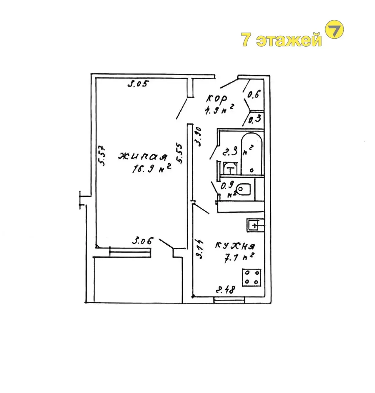 - кухня 7.1 м2,