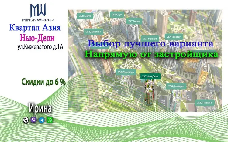 Квартира с отдельным входом и тамбуром, дом сданСвободная планировка, планируемое количество комнат - 1Выбирайте квартиру с "Новостройцентром", покупайте у Застройщика:консультация по условиям, подбор;организация просмотра;обмен старой квартиры на новостройкуОбъявление актуально на 26.10.25 Квартира находится в доме 25.7 "Нью-Дели", квартал "Азия", жилой комплекс «Минск Мир».