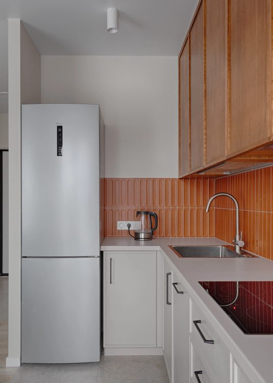 - Встроенная кухня выполнена с крашеными фасадами, установлены посудомоечная машина, измельчитель для мусора в раковине, фильтр для воды и бойлер. Вся мебель и техника остаются покупателю.