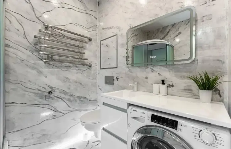 Вся квартира укомплектована необходимой техникой. Имеется посудомоечная машина и стирально-сушильная машина.