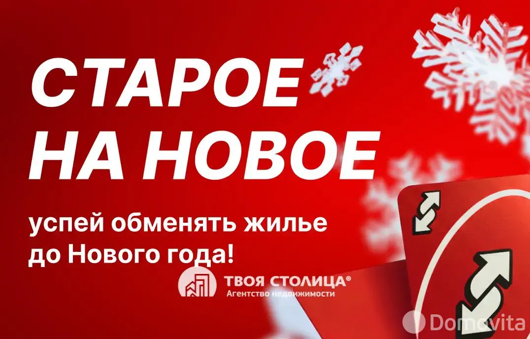Смотреть подробнее Торг. Предложите свою цену. Последние поступления квартир. ТОП-20 ДЕШЕВЫХ КВАРТИРБАЗА ПОКУПАТЕЛЕЙ – узнайте, кто готов купить вашу квартиру прямо сейчас!КАЛЬКУЛЯТОР СТОИМОСТИ ЖИЛЬЯ – онлайн- расчет стоимости вашей квартиры!ПЕРЕЕЗЖАЕМ В НОВОСТРОЙКУ- программа обмена старого жилья на новое. 2 сделки в 1 день!ПАРТНЕР-КРЕДИТ сопровождение кредитования для покупки и обмена «под ключ»ВАШ ВАРИАНТ- проверка квартир перед покупкой и оформление сделки, если вы нашли объект самостоятельно. ООО "Твоя столица", УНП 101136973, лицензия №02240/15 от 17.02.05г.
