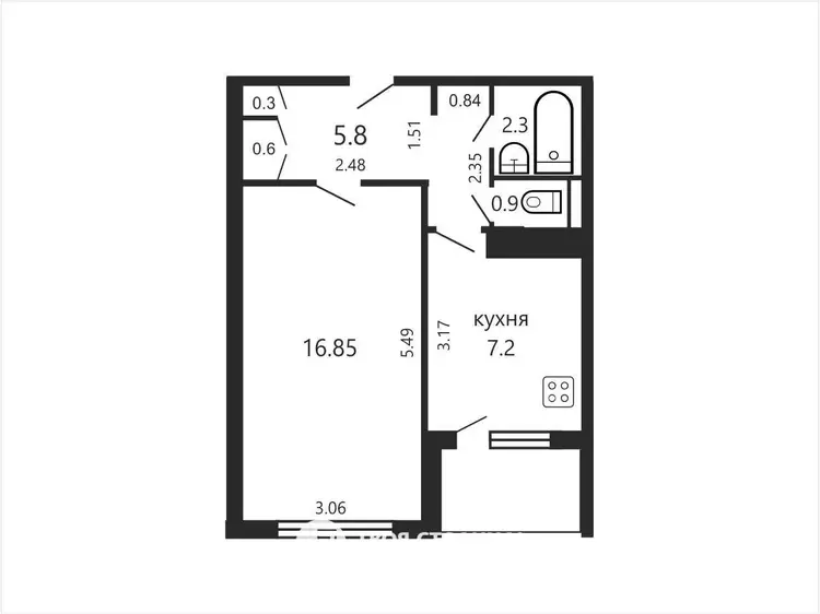 - Общая площадь – квартиры 33,8 кв.м., (СНБ-34,8