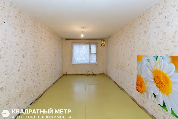 Продаётся 1 комнатная квартира под ремонт с вашей фантазией в Минске – Фрунзенский район, ул. Лещинского, дом 15, на 4 этаже 9 ти-этажного панельного дома, не угловая по расположению дома 1987 года постройки. До метро Кунцевщина - 5 минут пешком.