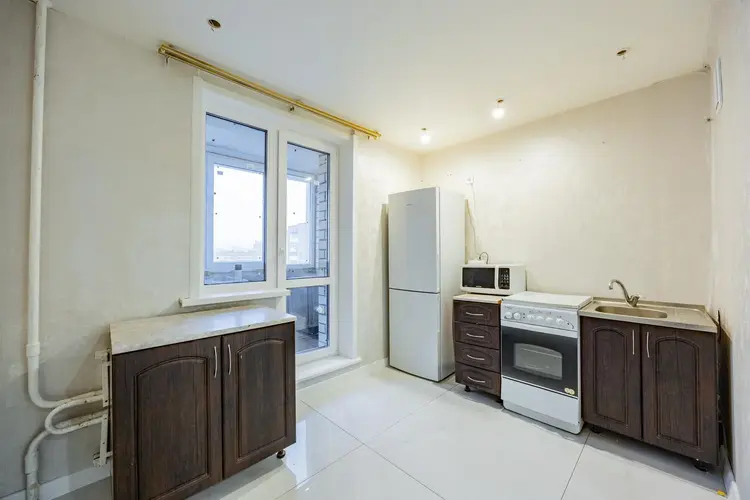 Планировка – улучшенный проект: общая площадь квартиры – 37,8 кв. м, жилая комната правильной формы 17,1 кв. м с балконом с видом на лес, просторная кухня 8,3 кв. м с балконом с видом во двор, коридор 7,6 кв. м и раздельный санузел.