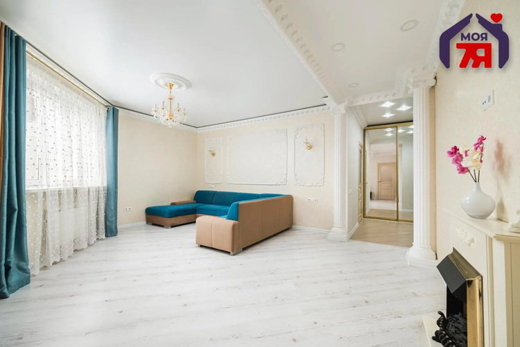 - Качественный ремонт : квартира выполнена в современном стиле с евроремонтом. На полу уложен качественный ламинат и кафель. Установлен камин, который привносит уют и тепло в ваш новый дом.