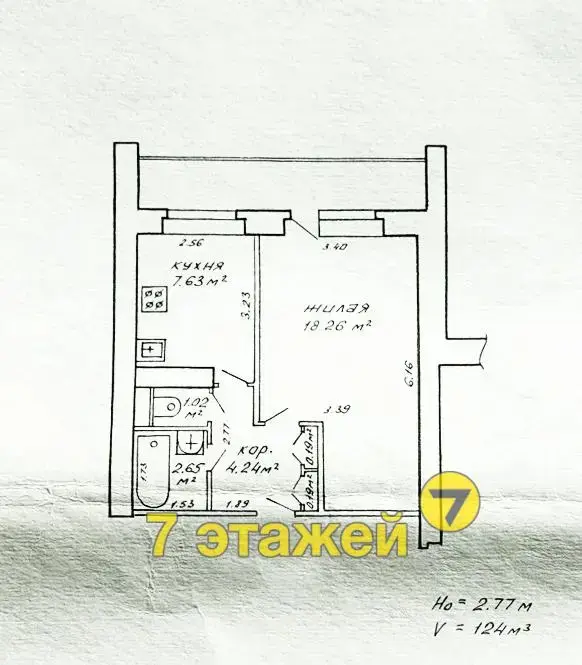 1-комнатная квартира на Маяковского, 16, находится на 8 этаже девятиэтажного кирпичного дома.