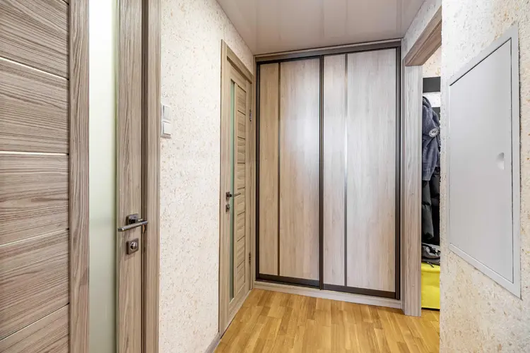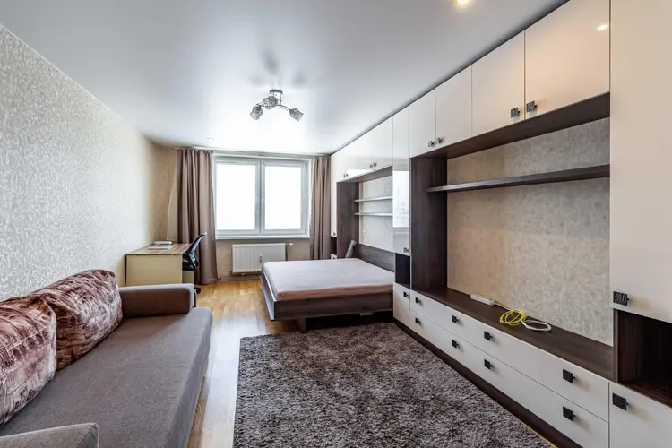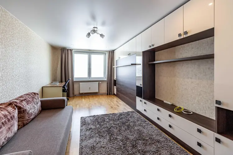 Также в квартире имеется встроенная мебель: комната оборудована встроенной кроватью, а в прихожей расположены два шкафа-купе.