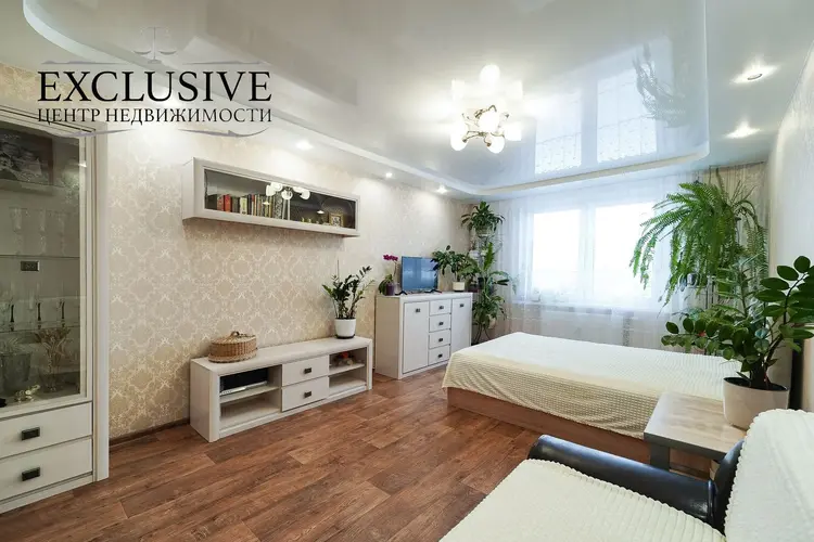 Квартира расположена на 6ом этаже 10ти этажного панельного дома и имеет прекрасную правильную улучшенную планировку с большой комнатой и кухней в 9 м.кв. и панорамным видом на зеленую зону и водоем. В квартире выполнен современный ремонт из качественных материалов в нейтральных тонах. Ремонт в идеальном состоянии. На стенах хорошие обои, качественный линолеум высокого класса, качественная плитка в санузле. Большая лоджия светлая с большими окнами. Кухня полностью оборудована! Встроенный шкаф-купе, сантехническое оборудование, кухонный гарнитур, плита остаются. Остальное -по согласованию.