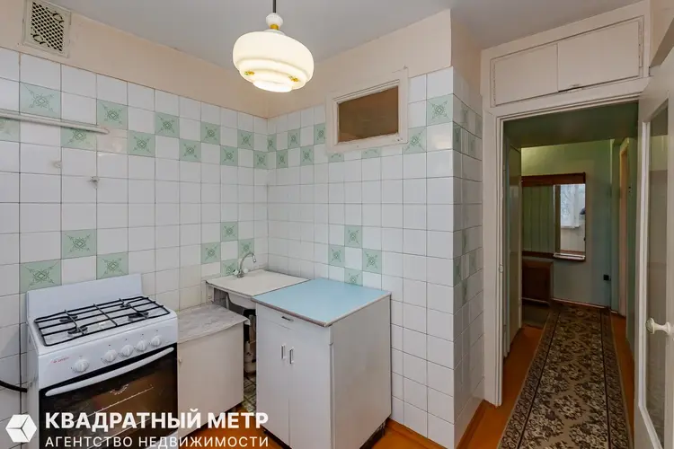 Продаётся 1 комнатная квартира с удовлетворительным ремонтом в Минске – Фрунзенский район, ул. Матусевича, дом 17, на 5этаже 5 ти-этажного панельного дома, не угловая по расположению дома 1969 года постройки. До метро Спортивная - 9 минут пешком.