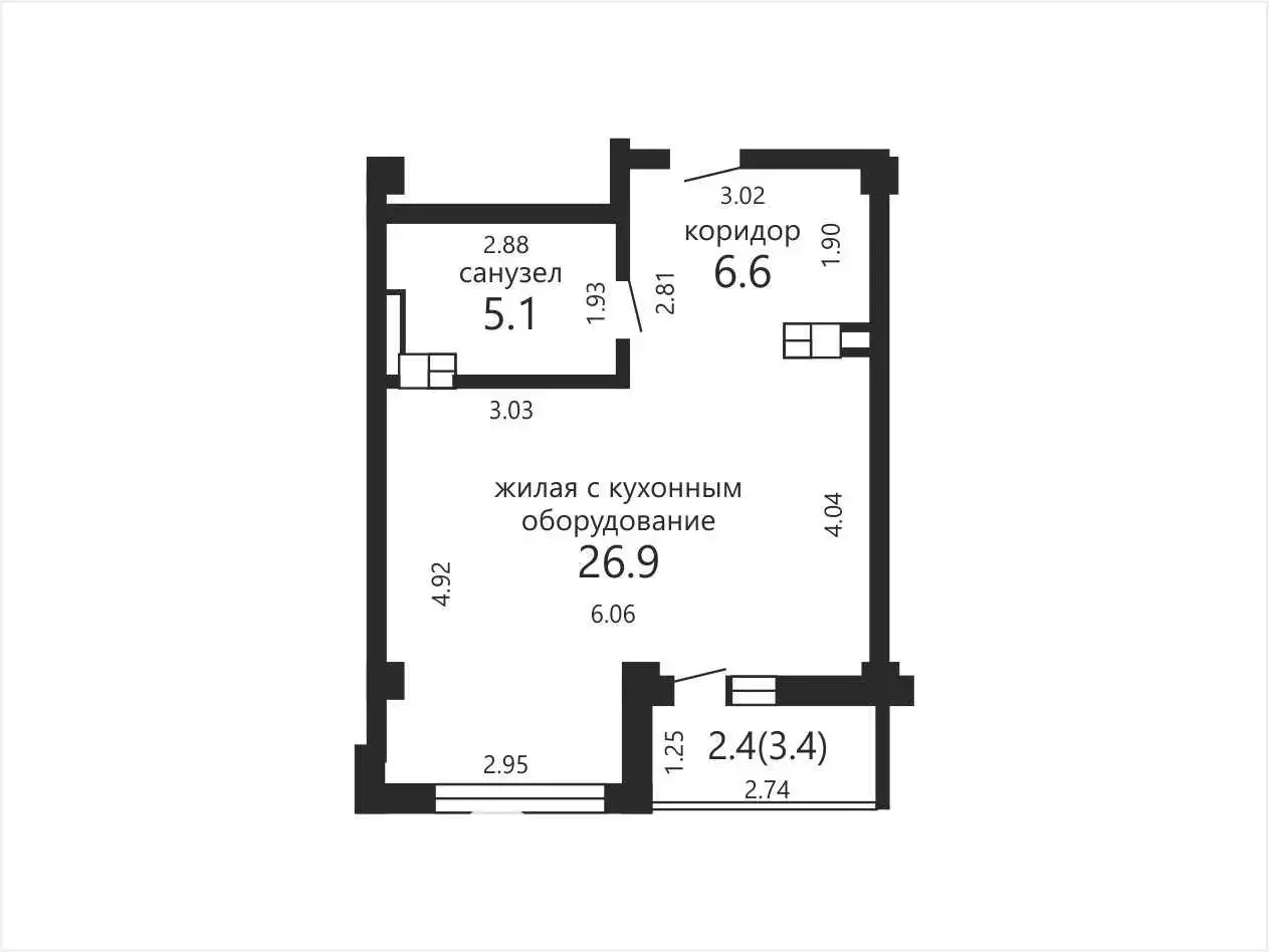 Просторная, легко зонируется под спальное место и рабочую зону — удобно как для жизни, так и для удалённой работы.