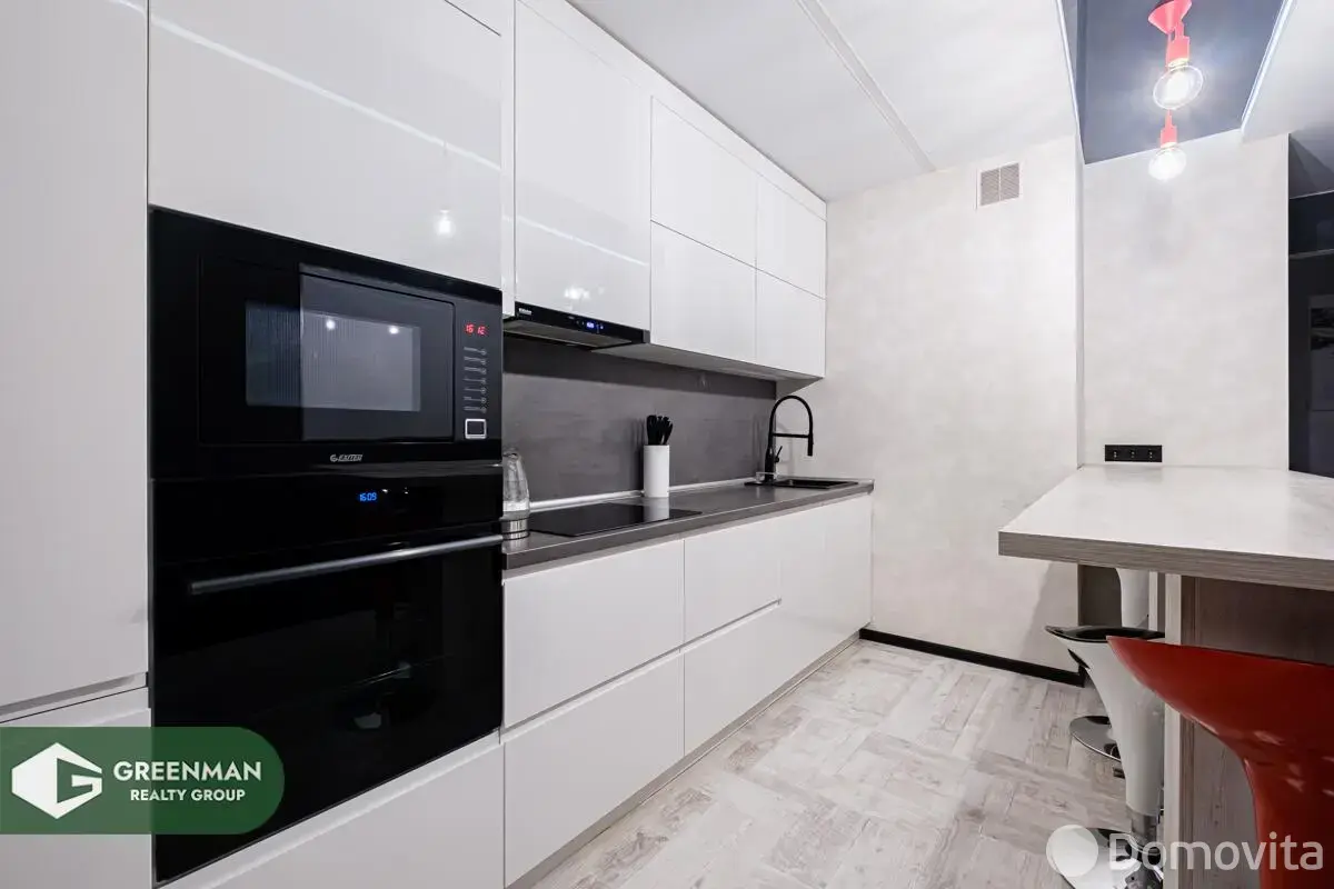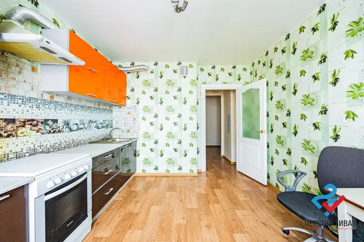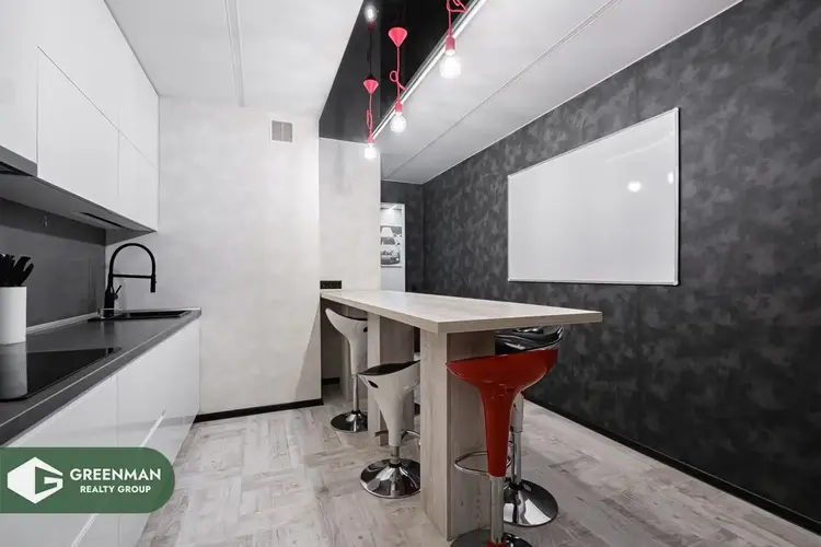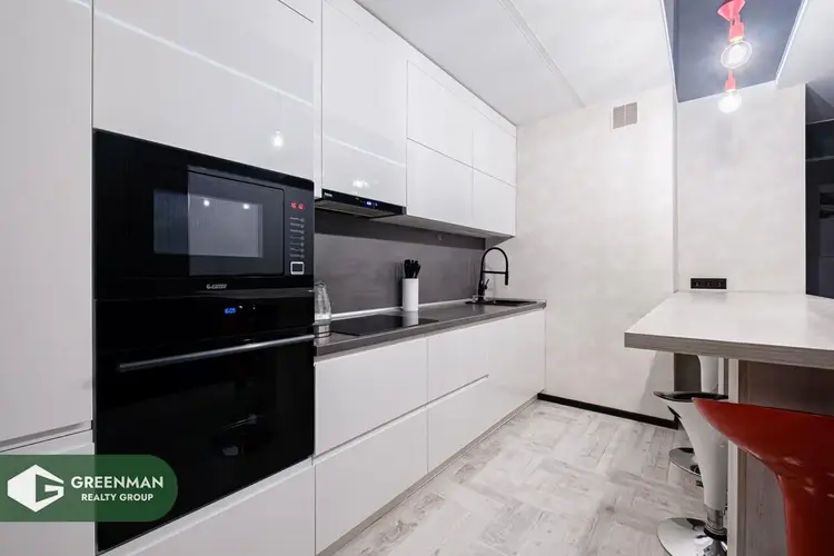 Большая комната с выделенной спальной зоной, современная кухня 13,3 м2 со всей необходимой встроенной техникой.