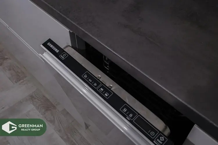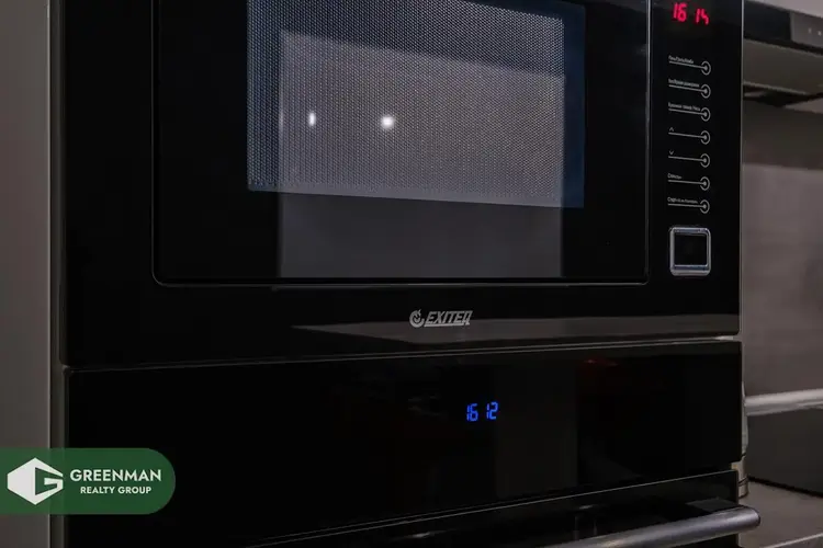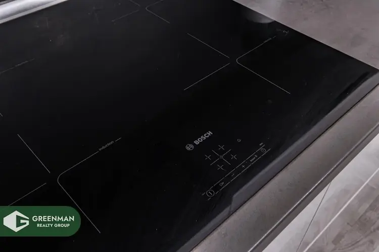 Современная кухня со встроенными холодильником, микроволновой печью, духовым шкафом, индукционной варочной панелью, посудомоечной машиной и вытяжкой удовлетворит самую притязательную хозяйку.