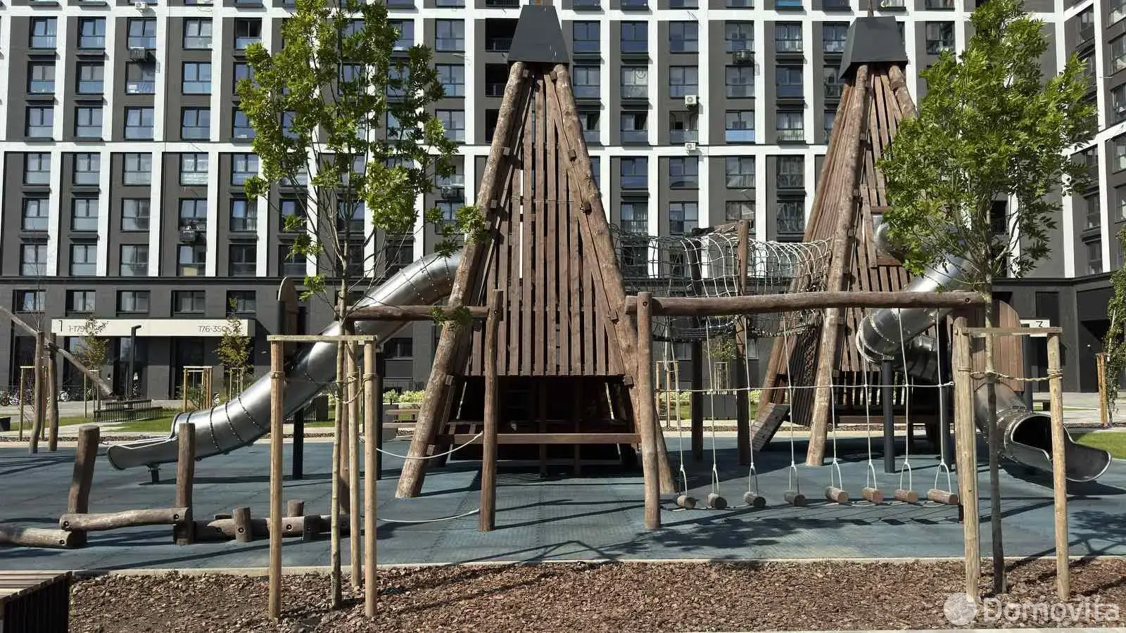 По периметру комплекса ландшафтный дизайн и малые архитектурные формы индивидуального дизайна, высажены взрослые деревья из питомников Беларуси и Германии.
