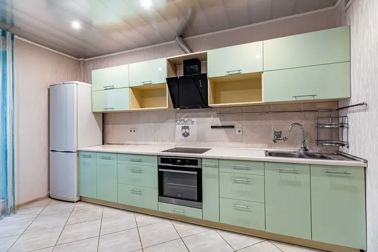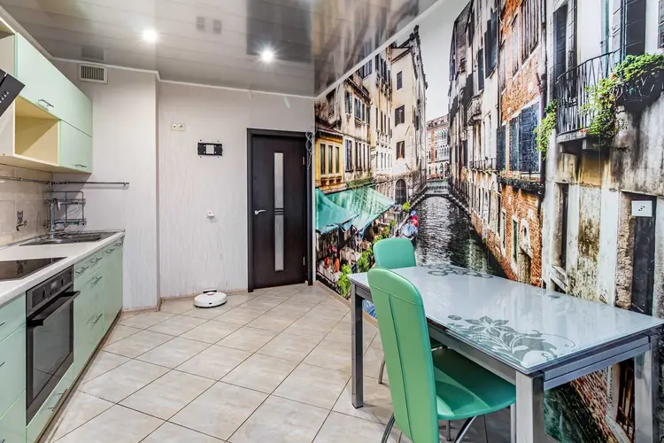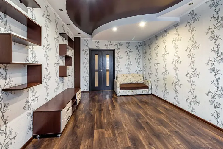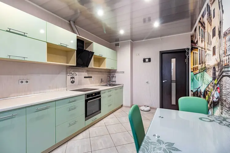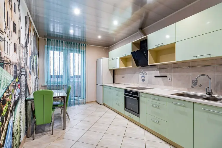 Ремонт выполнен с использованием современных материалов. Установлены стеклопакеты ПВХ. Натяжные потолки. Напольное покрытие ламинат и плитка. Встроенная кухня с бытовой техникой с выходом на лоджию. Санузел облицован плитой современного образца. В прихожей вместительный шкаф-купе. Входная дверь металлическая, межкомнатные двери из шпона.