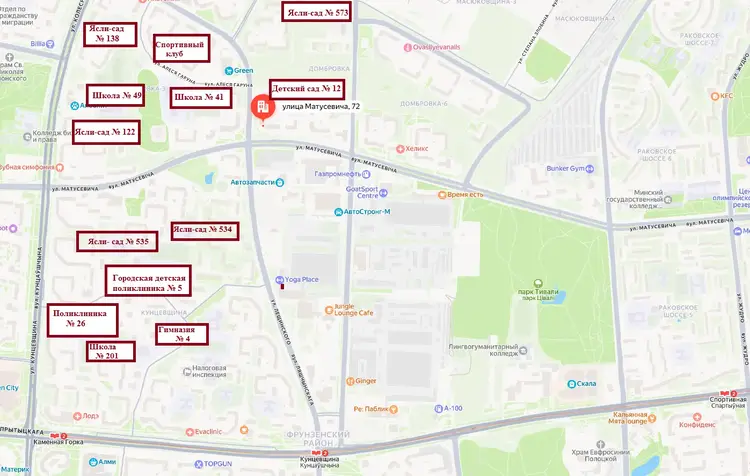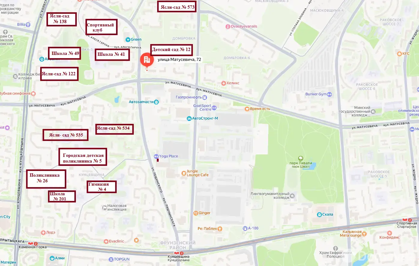 В шаговой доступности есть все, что необходимо для комфортного проживания: детские сады, школы, гимназия, детская и взрослая поликлиники, банки, магазины, мебельный и торговый центры с автозапчастями, рынок Западный, парк Тивали и т.д.