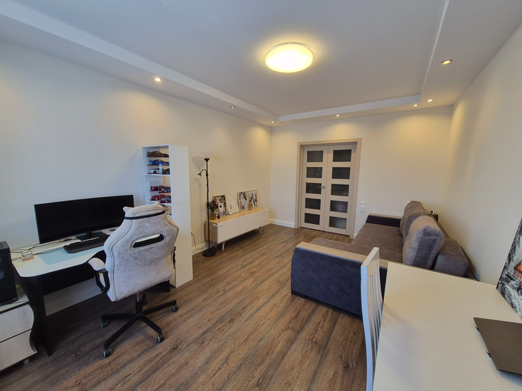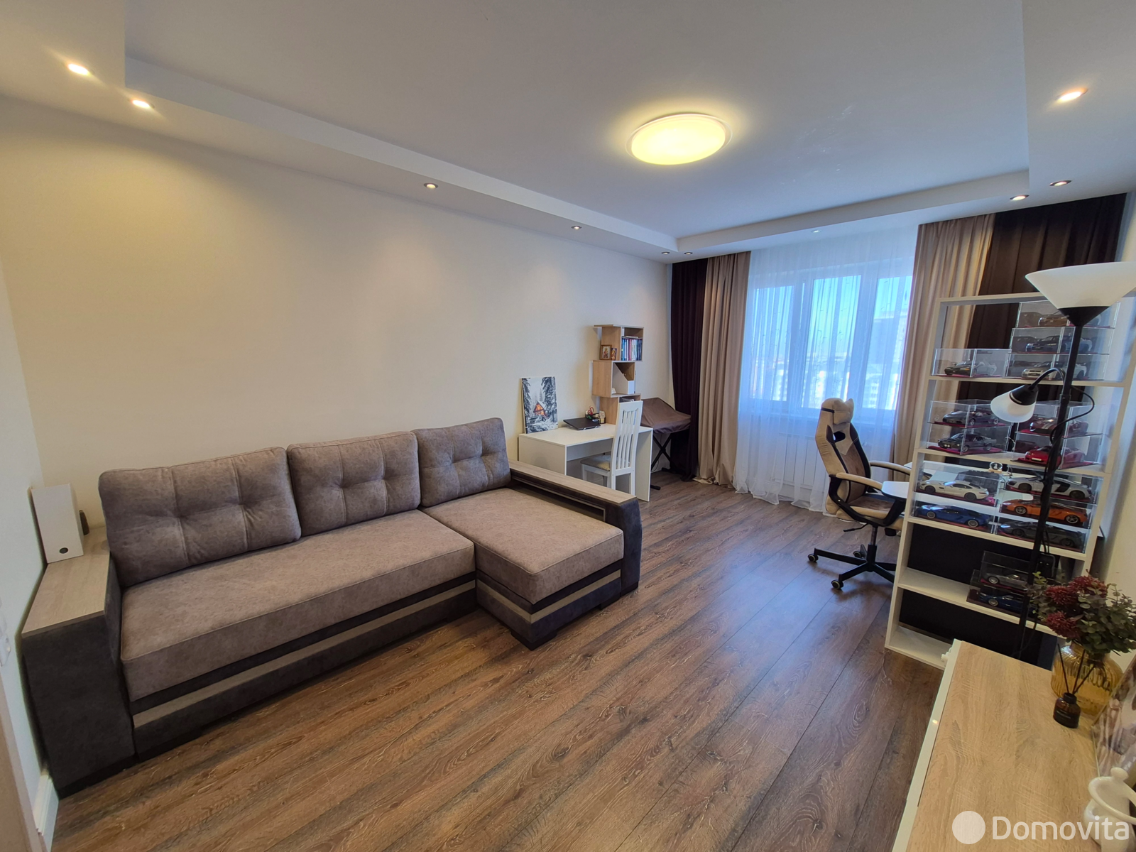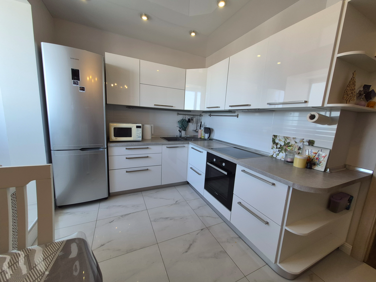 Продается просторная 1-комнатная квартира с отличным ремонтом по улице Матусевича 84. Общая площадь по СНБ-44.9м2, жилая площадь-17.9м2, площадь кухни-9.2 м2, лоджия - 2.4 м2, высота потолка: 2.65м. Евроремонт выполнен с использованием качественных материалов. Установлены двухкамерные стеклопакеты ПВХ с защитой от открывания окон, натяжные потолки и гипсокартон. Напольное покрытие: ламинат и керамогранит. Стены везде выровнены, в комнате обои, остальные комнаты - окрашены. Современная встроенная кухня с бытовой техникой (доводчики Blum, холодильник Samsung, индукционная варочная панель AEG, духовой шкаф Bosсh, кондиционер, система фильтрации воды). Лоджия вместительная, отремонтирована в продолжение кухни, под подоконником установлена дополнительная система хранения вещей на всю длину стены. В санузле установлен бойлер Ariston. В ванной сантехника Tres (Испания) и Roca (Испания). Стиральная машина LG. Керамогранит. Принудительная вентиляция. В прихожей два вместительных шкафа-купе, двусторонний шкаф для одежды. Входная дверь металлическая. Сигнализация. Индивидуальные приборы учета тепла, регулируемые радиаторы отопления. Восточная сторона, летом не жарко (кондиционер включаем редко), зимой не холодно. Высокий этаж, прекрасный вид из окна. Отдельный двор, въезд через шлагбаум, видеонаблюдение в подъезде и во дворе, 2 лифта. Очень хорошие соседи. Есть домовой чат. На этаже закрытый тамбур. В ближайшее время в подъезде установят алюминиевые входные двери. Возможна продажа с мебелью. Развитая инфраструктура по всем направлениям, рядом ДС Кунцевщина, в пешем доступе метро “Каменная горка”. Отличный вариант для жизни и сдачи в аренду.