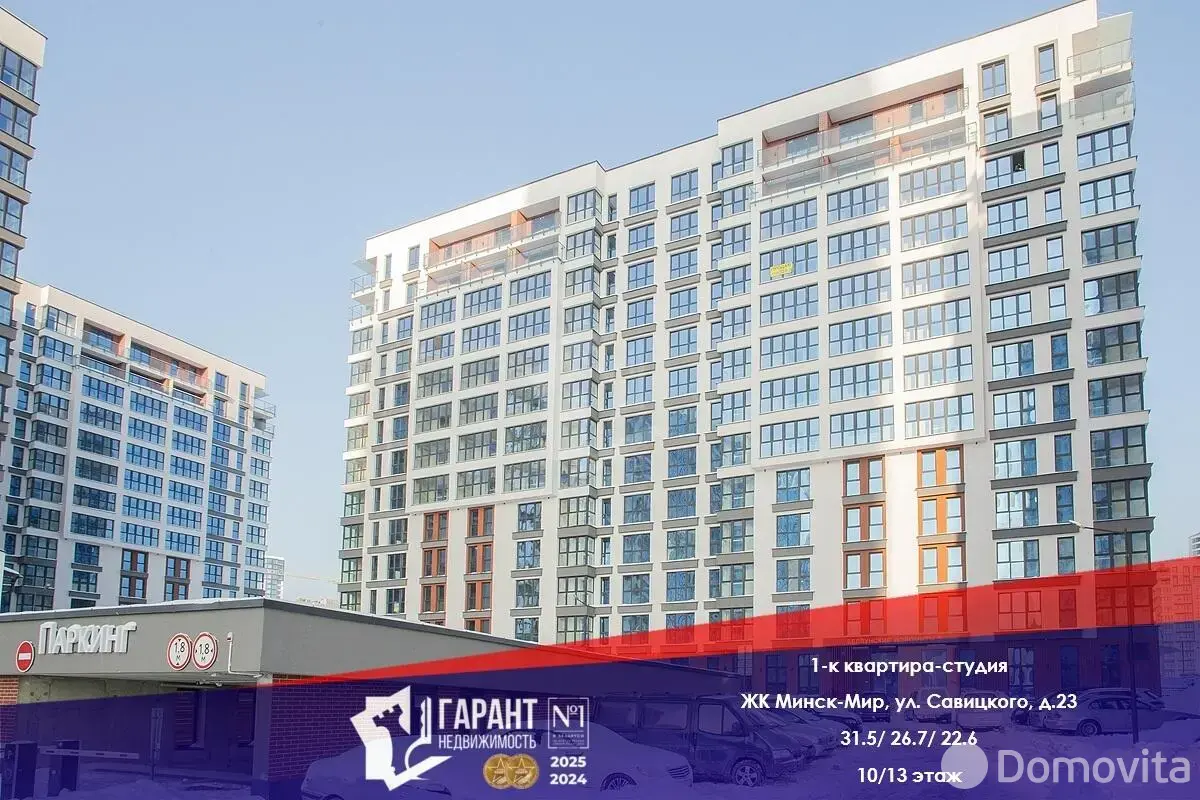 В продаже квартира-студия в ЖК «Минск Мир» расположена по адресу ул. Савицкого, 23.