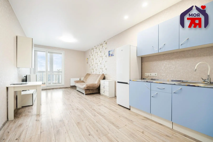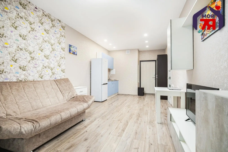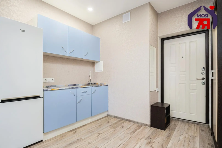 -В прихожей установлен вместительный шкаф-купе, в кухне - навесные шкафы, холодильник. Это готовое решение, позволяющее сразу заехать и жить без дополнительных вложений.