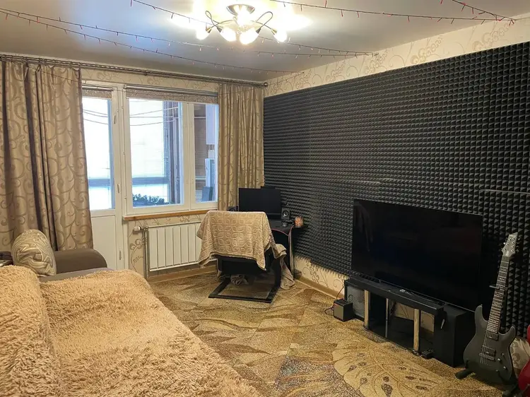 Звукоизоляция со стены жилой комнаты легко снимается, под ней такие же обои.