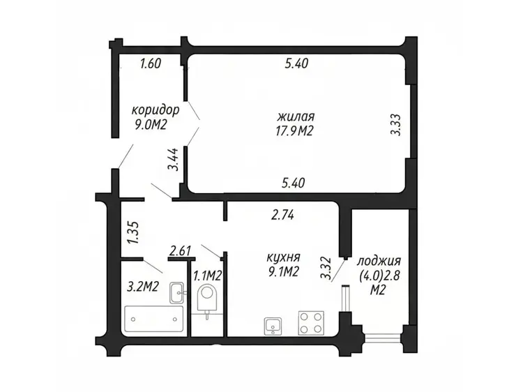 Расположена по адресу: Неманская ул. 37. Общая площадь квартиры по СНБ 43.1 кв.м, жилая 17.9 кв.м, просторная кухня 9.1 кв.м.