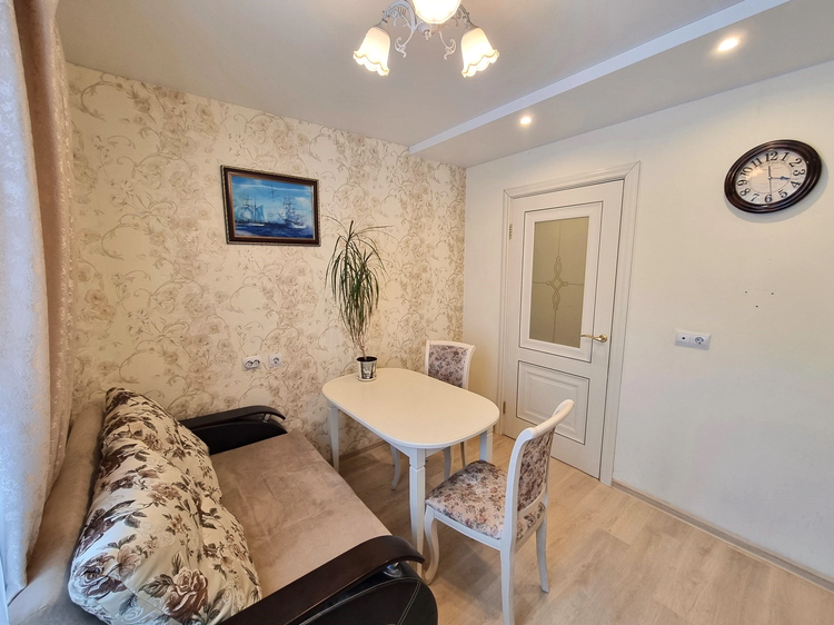 Квартира полностью готова к проживанию. В ней сделан аккуратный уютный ремонт – светлые красивые обои, линолеум Tarkett, свежая сантехника. В ванной пол с подогревом. В квартире комфортно и уютно в зимний период.