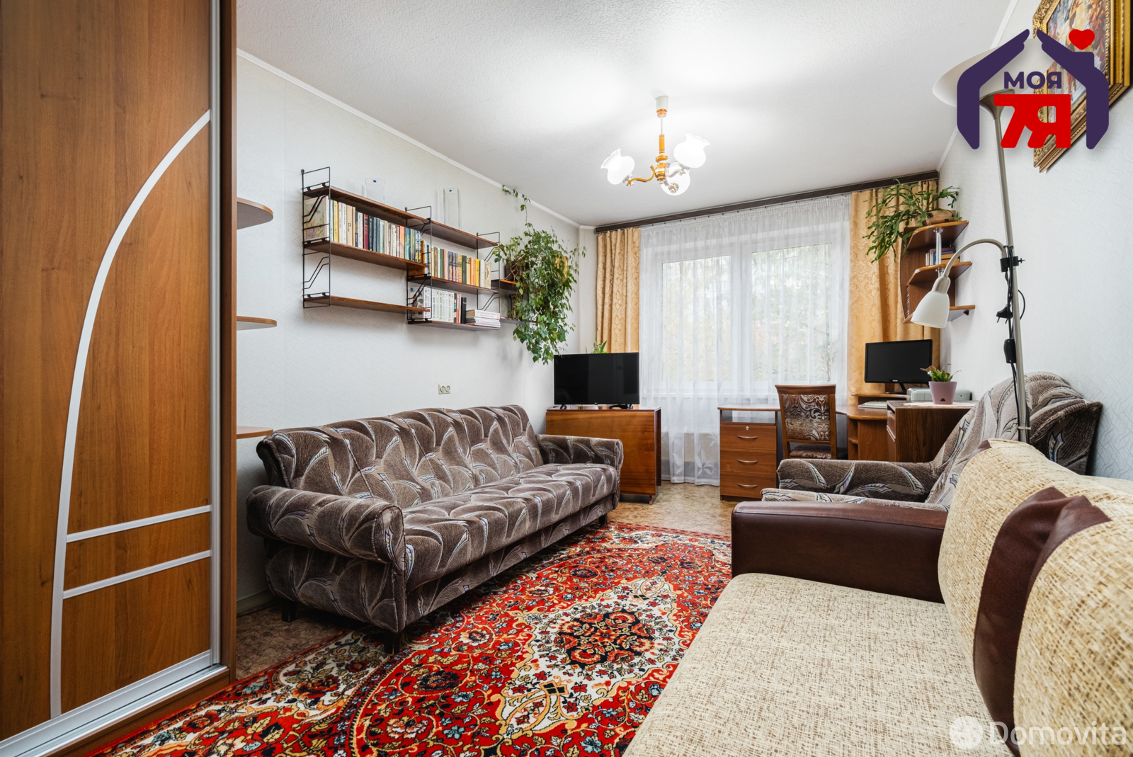 - Просторная жилая комната площадью 16,7 м2 станет отличным местом для отдыха и личного пространства. Светлые обои на стенах и большое окно с двухкамерным стеклопакетом делают помещение тёплым и солнечным, а встроенный шкаф-купе помогает рационально использовать каждый метр.
