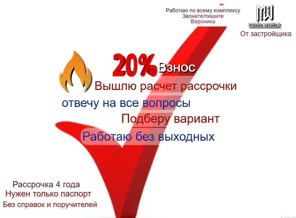 - выгодная рассрочка (20% первоначальный взнос) без справок и поручителей. Сделаю расчет, звоните!