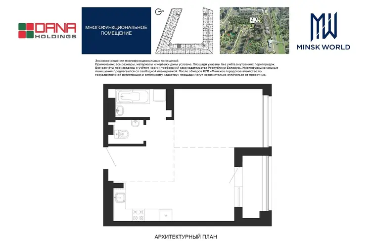 Высота от пола до потолка — 2,67 м. Большинство бизнес-апартаментов имеют панорамные окна, в каждом — лоджии.