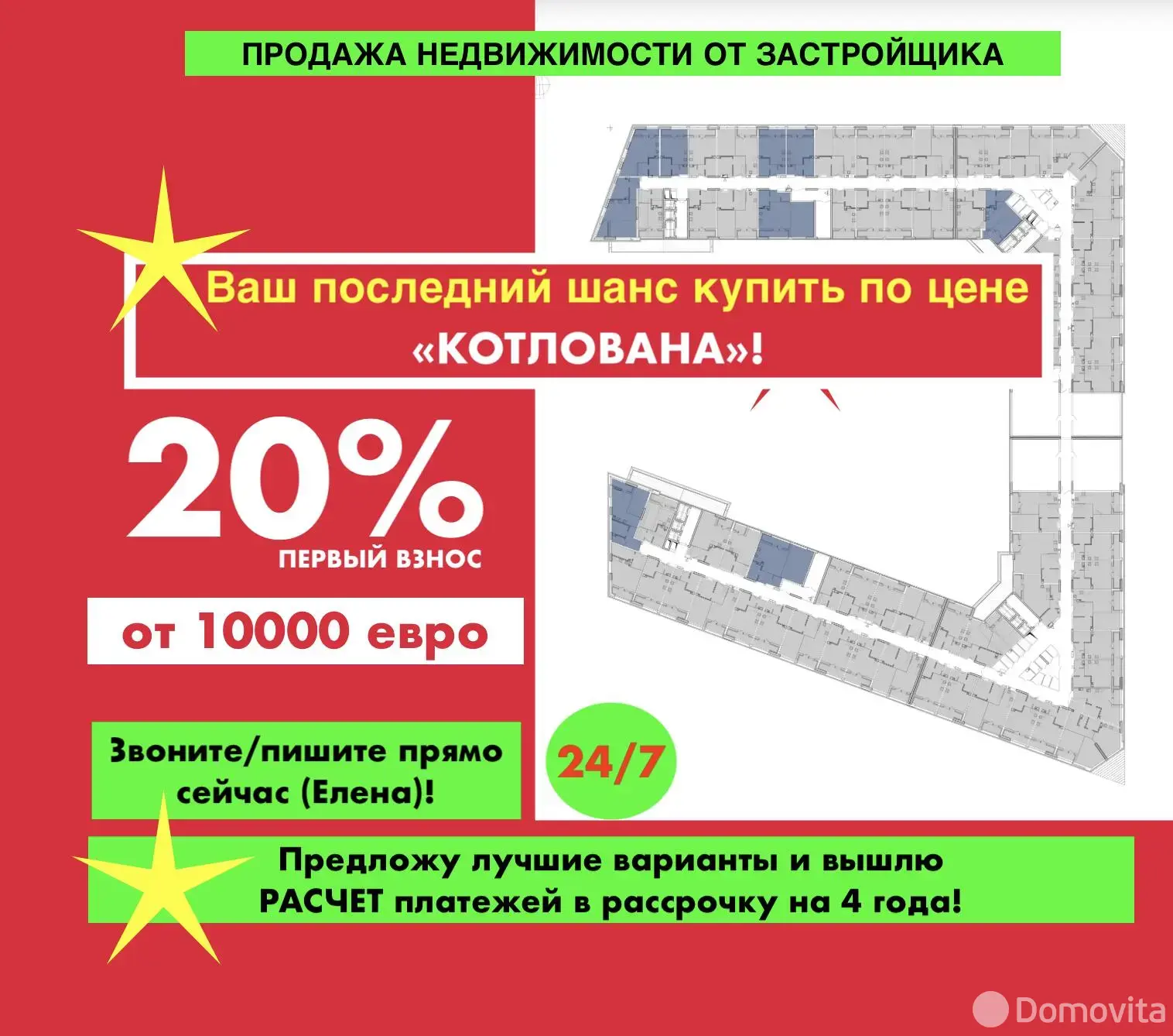 Выбор этажей и планировок! Вышлю РАСЧЕТ платежей в РАССРОЧКУ на 4 года!
