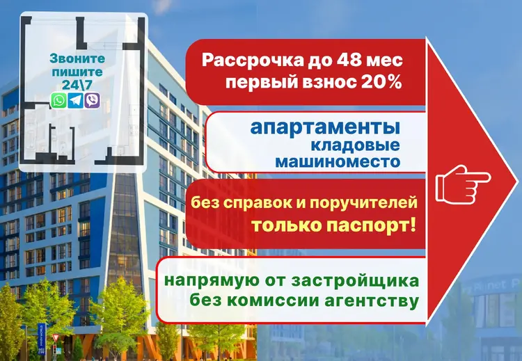 • Возможна покупка апартаментов от застройщика в рассрочку